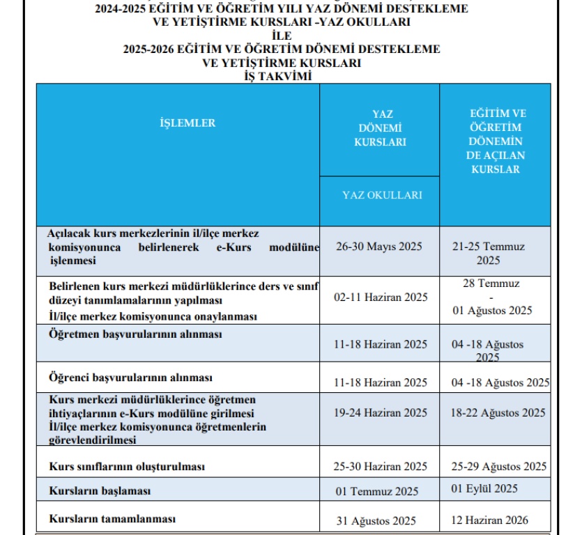 Yaz Dönemi Destekleme ve Yetiştirme Kursları ile 2025-2026...